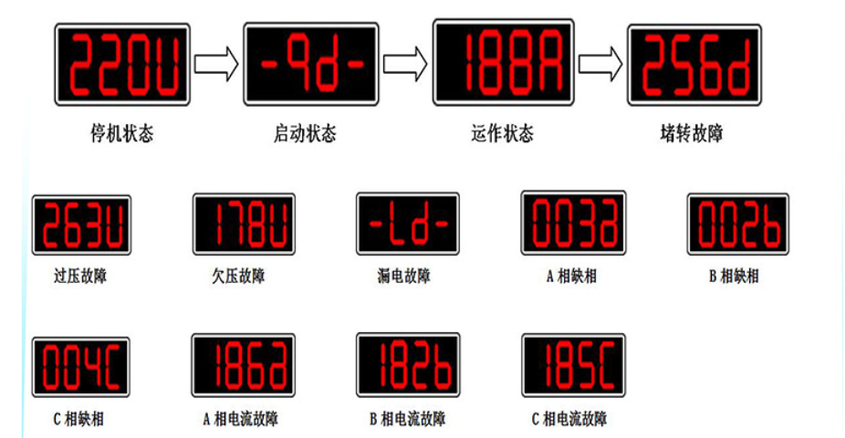 保護(hù)功能配置:具備過載、斷相、接地、堵轉(zhuǎn)、過流、欠流、漏電、欠壓、過壓、三相電流不平衡等所有的電動(dòng)機(jī)保護(hù)功能,可確保電機(jī)的安全生產(chǎn)。